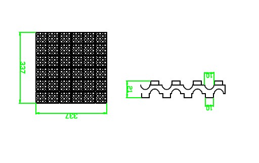 為了使用及安裝方便,設計成53×53×22的正方形塊體,由四個或十六個塊體組成一組,如若單塊使用,可在連接縫處切開,使用組合靈活。使用時有16種組合形式A—P式(見下表)。