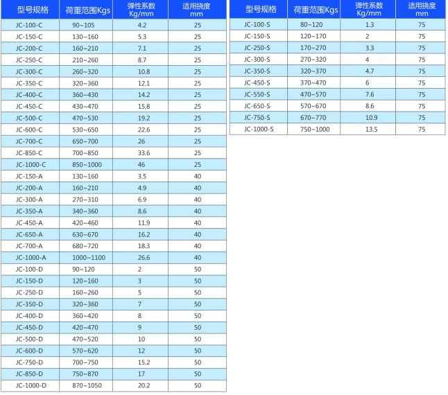 JC型彈簧減振器特性: